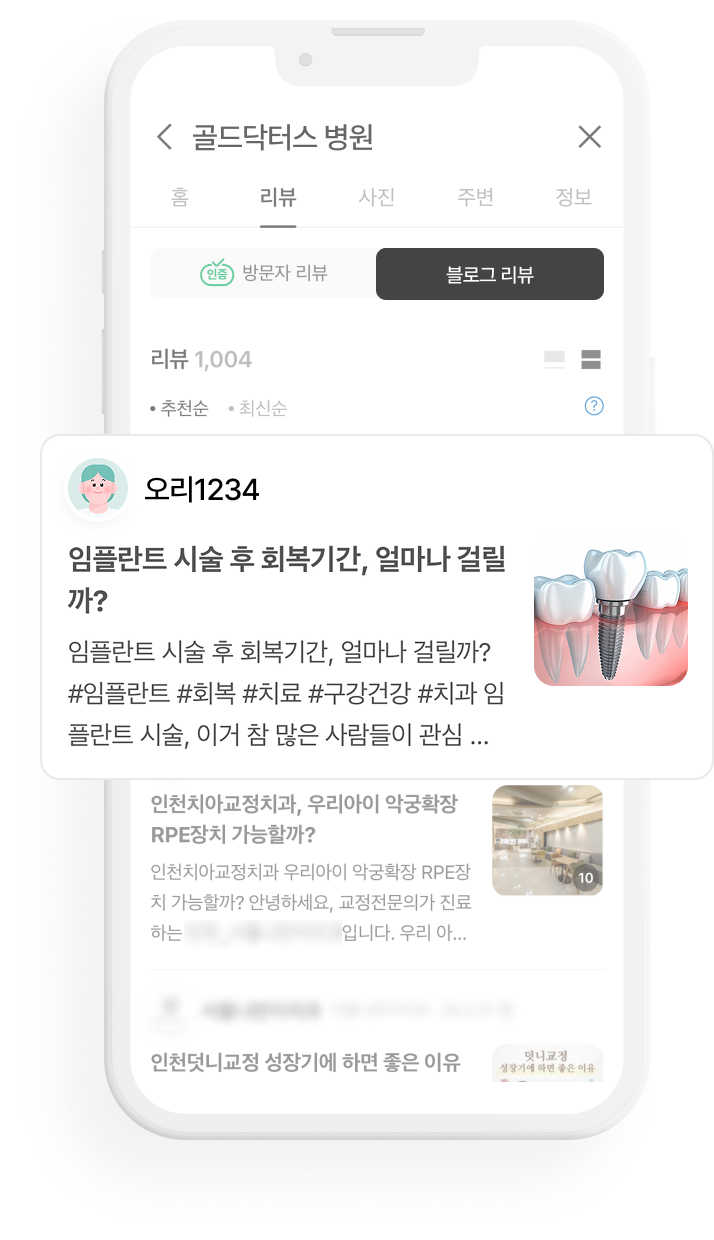 병원은 철저한 '신뢰'를 기반으로 하는 신뢰재입니다. 블로그는 전문적인 의료 정보를 지속적으로 제공함으로써 병원과 의료진의 전문성을 자연 스럽게 보여주고 잠재 환자의 신뢰를 구축하는 가장 효과적인 방법입니다.